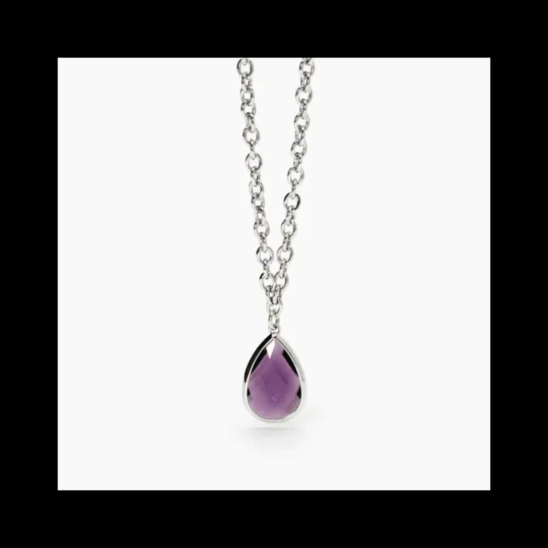 Girocollo in acciaio 316L con catena forzatina 4 mm, pendente taglio goccia con glass viola 14×20 mm, lunghezza regolabile da 40 a 45 cm