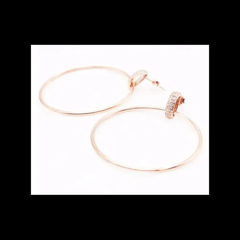 Orecchino a Cerchio attacco con Pavè bianco in argento 925 Rosè