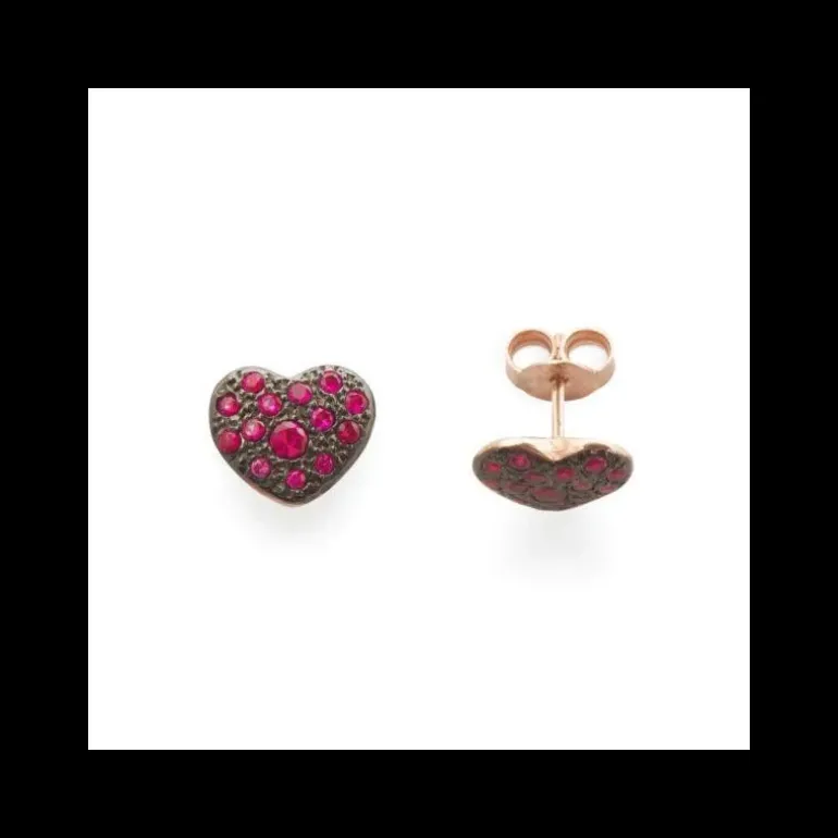 Orecchini pavè in argento 925 a forma di cuore con uno studio particolare di incassatura mista, arricchito da pietre taglio brillante di svariati colori e dimensioni.