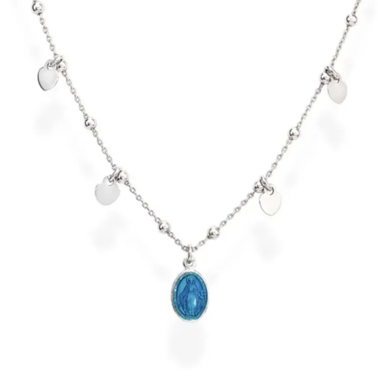 Amen Collana Madonnina Smaltata Blu e Cuori