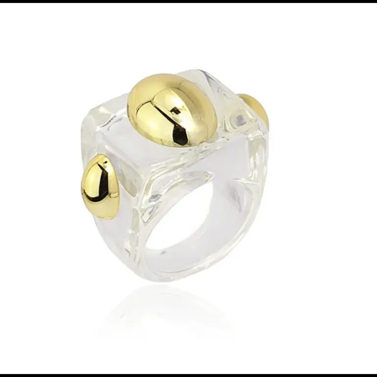 Anello in acrilico con dettagli metallici. Taglia unica.