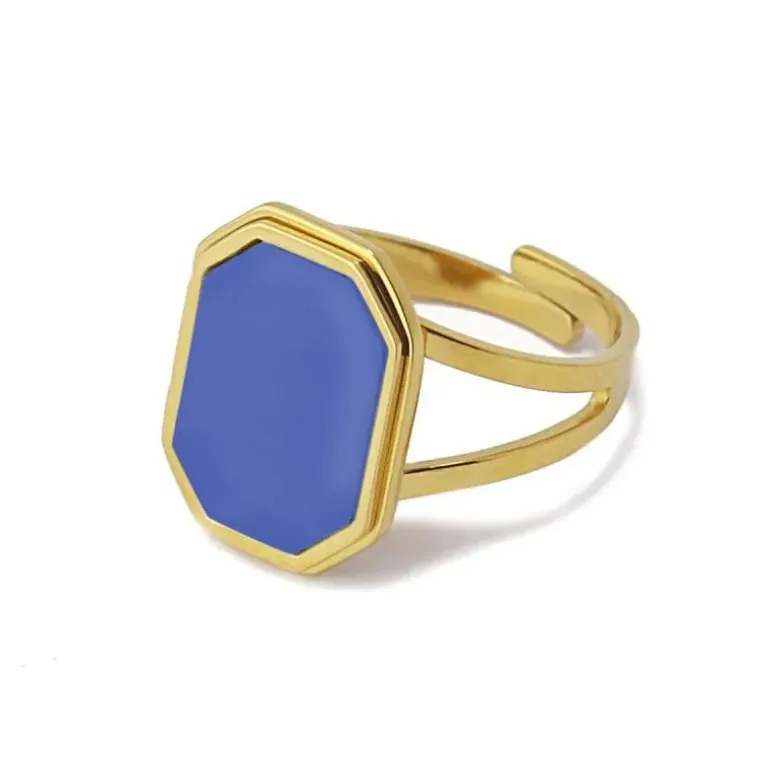 Anello gioiello regolabile con pietra acrilica esagonale 10×15 mm. È un pezzo ideale da indossare per eventi di ogni genere e che si abbina perfettamente ad altri gioielli d’oro. È realizzato in acciaio chirurgico anallergico e inossidabile. Taglia unica.