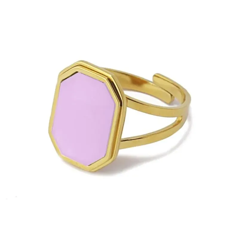 Anello gioiello regolabile con pietra acrilica esagonale 10×15 mm in turchese, rosa o beige. È un pezzo ideale da indossare per eventi di ogni genere e che si abbina perfettamente ad altri gioielli d’oro. È realizzato in acciaio chirurgico anallergico e inossidabile. Taglia unica.