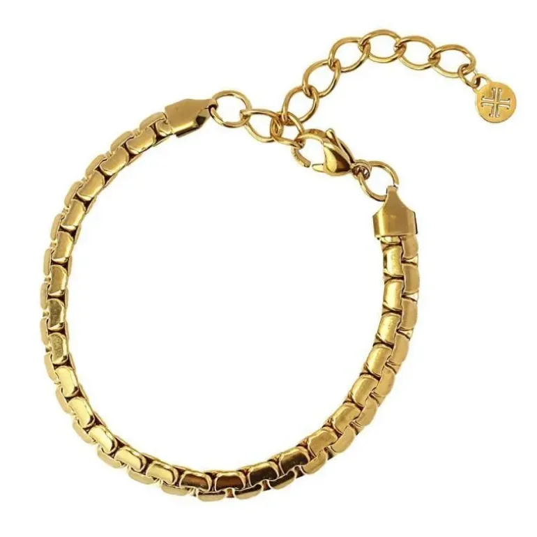 Bracciale da uomo in acciaio chirurgico e maglie tipo cinturino da orologio larghe6.5 mm. È ipoallergenico e può bagnarsi, quindi puoi indossarlo sempre e non preoccuparti della sua cura. Misura 19 cm di lunghezza e ha un’estensione extra di 5 cm.