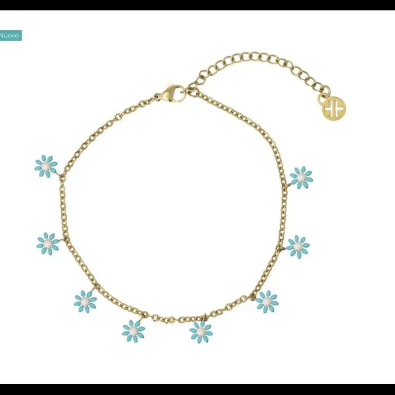 Cavigliera a catena con charms a forma di margherite multicolori. È realizzato in acciaio chirurgico placcato oro e smalto ceramico su entrambi i lati dei fiori. Per dare un tocco romantico alle tue caviglie e aggiungere colore ai tuoi look. È perfetto perché non produce allergie, non arrugginisce ed è resistente all’acqua. Ha una catena di estensione di 5 cm con logo anartxy in modo da poterla adattare alle tue esigenze.