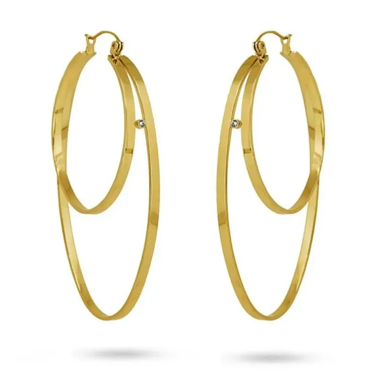 Anelli formati da due ovali di diverse dimensioni uniti da uno zircone. Lusinghieri e sofisticati, stanno benissimo con le catene intorno al collo. Puoi indossarli tutti i giorni o in occasione di eventi speciali. Sono realizzati in acciaio chirurgico anallergico e sono disponibili in oro o argento. Misura 60 mm di lunghezza e ha una chiusura di tipo catalano, comoda e sicura. Molto stravagante!