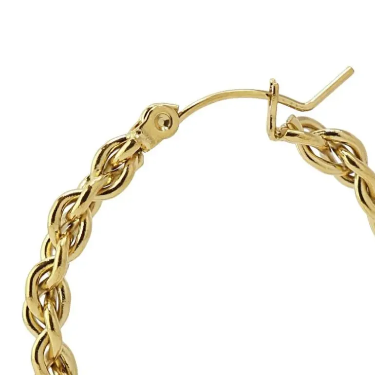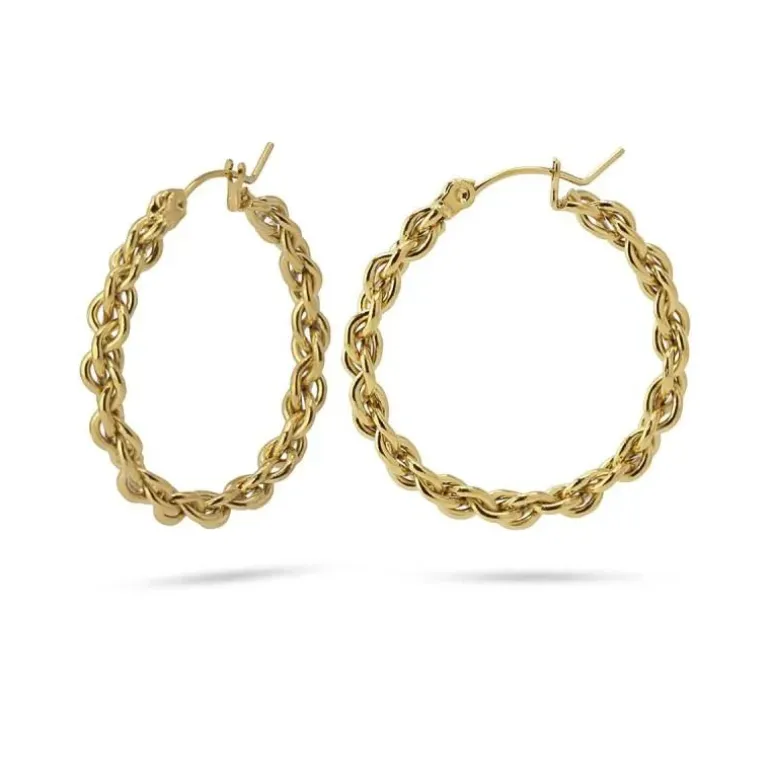 Piccoli cerchi in acciaio chirurgico con un design intrecciato. Un basic sempre di tendenza e che sta benissimo su ogni donna. Disponibili in oro o argento, sono la combinazione ideale per look casual. Misurano 30 mm di diametro e hanno una chiusura di tipo catalano, che li rende molto comodi da indossare e da togliere. Ipoallergenico e inossidabile.