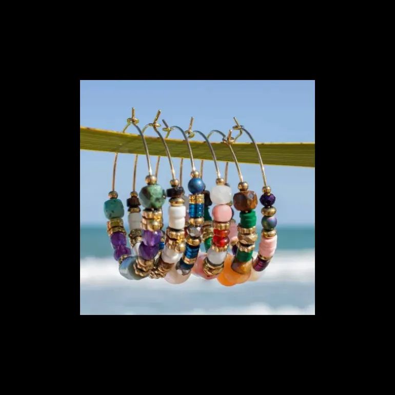 Orecchini a cerchio fatti a mano. Sono realizzati in acciaio chirurgico ipoallergenico con sfere di ematite e dischi in vetro colorato tipo heishi. Dettaglio centrale con perla d’acqua dolce. Super lusinghiero e femminile. Puoi scegliere tra tre tonalità e abbinarle alla collana o al braccialetto abbinati. Misurano 40 mm di diametro.