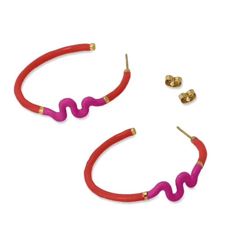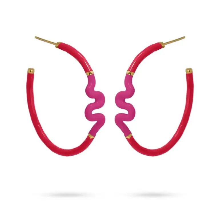 Orecchini a cerchio a sezione circolare con dettaglio ondulato realizzati in acciaio chirurgico smaltato in due tonalità: turchese e viola o fucsia e rosso. Femminili, allegre e d’effetto, sono perfette con look rilassati da giorno. Hanno un perno di chiusura a pressione a farfalla. Misurano 40 mm di diametro e non provocano allergie. Dettagli del prodotto Materiale aggiunto Smalto Dimensioni 40 mm Materiale Acciaio chirurgico Riferimento CPE140FC