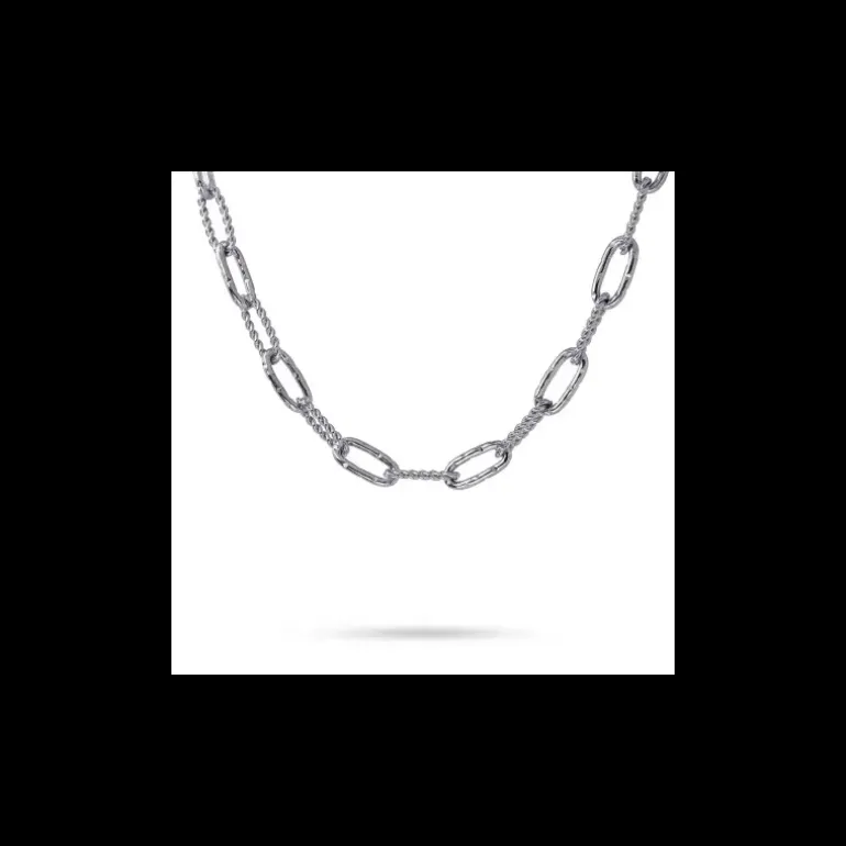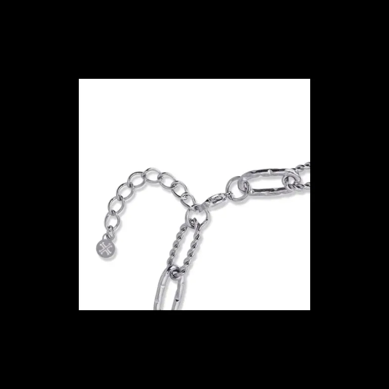Collana in acciaio chirurgico anallergico composta da maglie da 22 mm di diverse texture. Leggero e senza tempo, è tutto ciò di cui hai bisogno per essere alla moda nella tua quotidianità. Abbinabili ad altre catene dorate come collane a strati, il trend del momento. Misura 40 cm di lunghezza e ha una prolunga extra di 5 cm e una chiusura a moschettone.