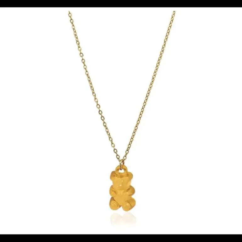 Collana con catena sottile in acciaio placcato oro e pendente ispirato agli orsetti di gelatina. Dai ai tuoi look un tocco rilassato, divertente e giovanile. Puoi indossarlo anche in spiaggia o in piscina perché è impermeabile e anallergico. La catena può essere regolata grazie alla sua estensione di 5 cm. Molto dolce!