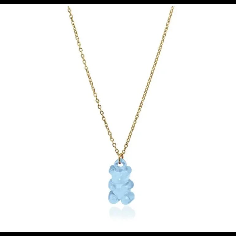 Collana con catena sottile in acciaio placcato oro e pendente ispirato agli orsetti di gelatina. Dai ai tuoi look un tocco rilassato, divertente e giovanile. Puoi indossarlo anche in spiaggia o in piscina perché è impermeabile e anallergico. La catena può essere regolata grazie alla sua estensione di 5 cm. Molto dolce!