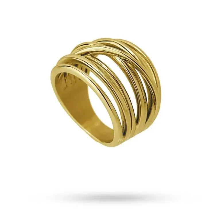 Anello in acciaio chirurgico con disegno multilinea. Disponibile in oro o argento, è un pezzo essenziale per il tuo portagioielli che ti permetterà di apparire perfetta ogni giorno. Non provoca allergie e può bagnarsi. Te lo dai a te stesso? Dettagli del prodotto Dimensioni 18 mm Materiale Acciaio chirurgico