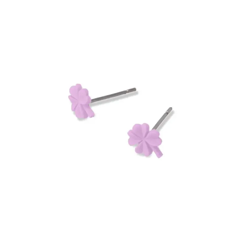 Piccoli orecchini a forma di quadrifoglio realizzati in ceramica smaltata. Sei fortunato perché sono disponibili in verde, lilla o rosa. Sono ideali da indossare tutti i giorni e danno un tocco di colore e allegria ai tuoi outfit. La chiusura è in acciaio chirurgico anallergico. Misurano 6 mm. Dettagli del prodotto Materiale aggiunto Ceramica Smalto Dimensioni 6 mm Materiale Acciaio chirurgico Riferimento CPE111VIO