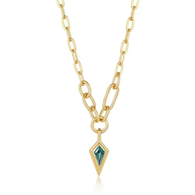 ANIA HAIE – Collana a catena grossa con pendente a goccia scintillante oro verde acqua