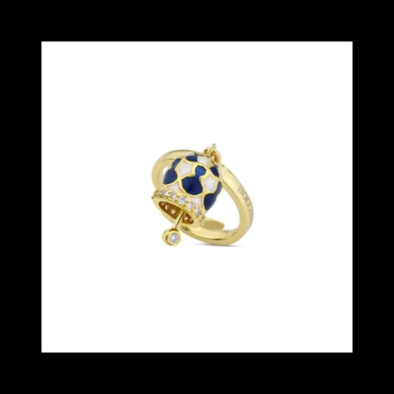 Boccadamo – Anello placcato oro giallo con campanella portafortuna blu