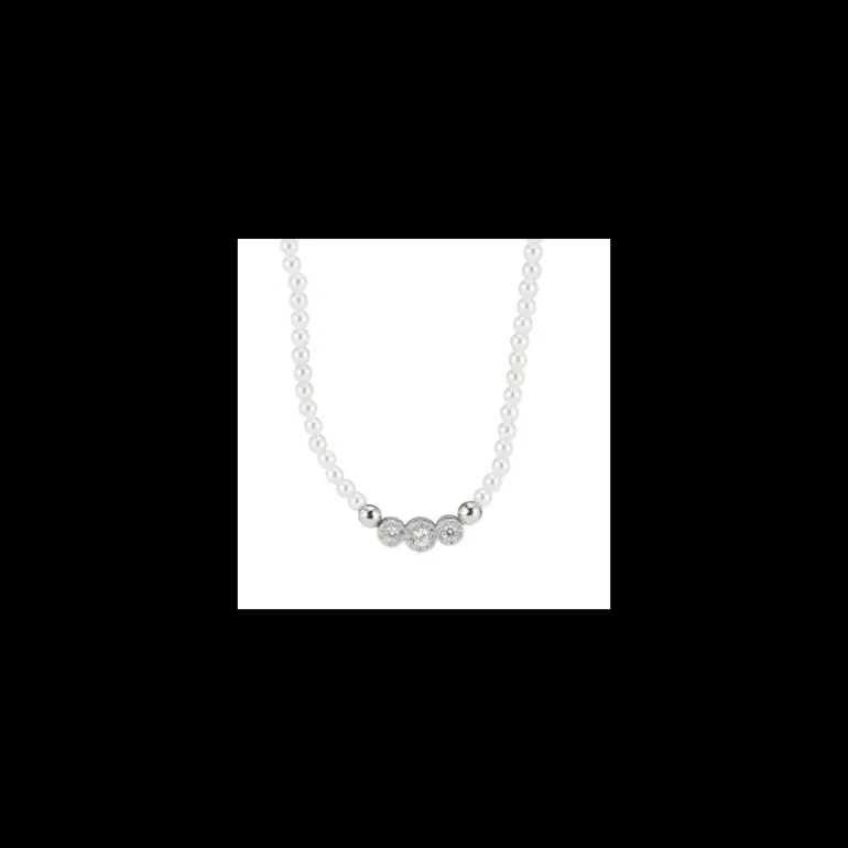 BOCCADAMO – Collana di perle con centrale a tre cestelli di zirconi bianchi