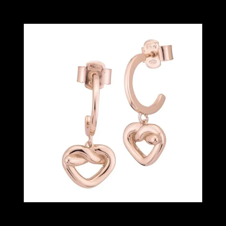 Orecchini a cerchio in argento placcato oro rosa con centrale intrecciato a forma di cuore traforato.