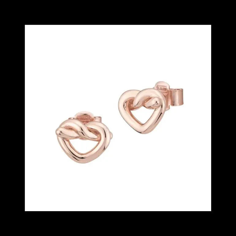 Orecchini in argento placcato oro rosa con centrale intrecciato a forma di cuore traforato.