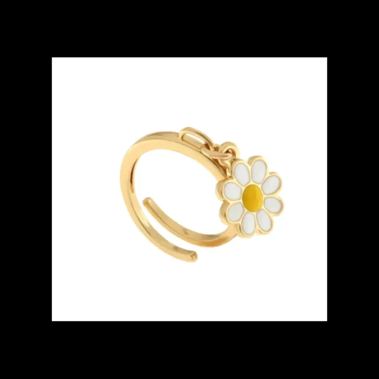 Anello in Metallo con ciondolo margherita colorata Made in P.R.C.. Materiali: Metallo Base, Pietra: Smalto e cristalli, Galvanica: Placcato Oro, Varianti o Misura: TAGLIA UNICA – REGOLABILE, Colore: BIANCA. Forma: MARGHERITE.