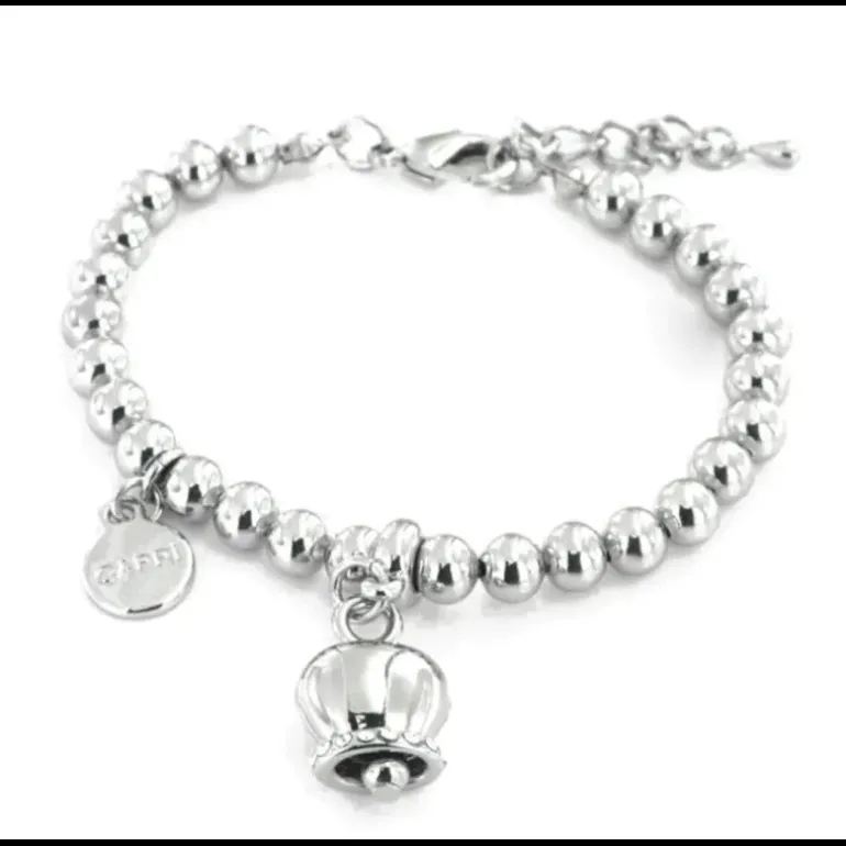 Bracciale in Metallo maglia a sfere, con campanella portafortuna pendente, impreziosita da cristalli . Materiali: Metallo Base, Pietra: Cristalli, Galvanica: Placcato Rodio, Varianti o Misura: 17.5+3.5Cm., Colore: TRASPARENTE. Forma: CAMPANELLA.