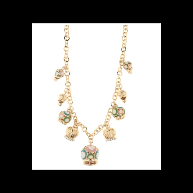 Collana in Metallo con campane pendenti colorati e cristalli bianchi.