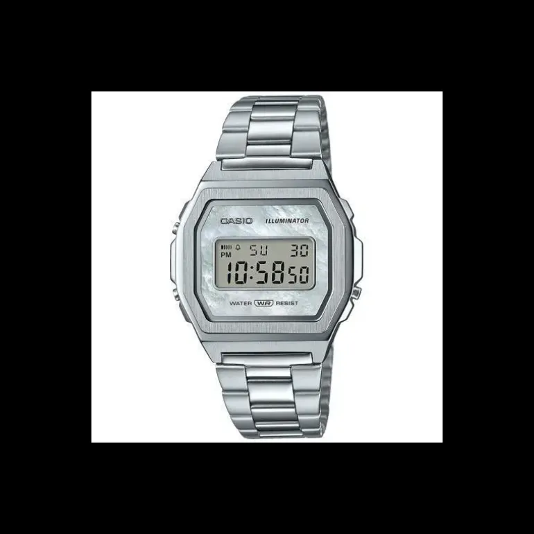 Scheda Tecnica Luce LED Un diodo per l´emissione di luce è utilizzato per illuminare il quadrante. Cronometro – 1/100 sec – 1 ora. Allarme giornaliero L’allarme giornaliero ricorda eventi che si ripetono quotidianamente con un segnale acustico emesso all’ora preimpostata. Calendario automatico. Formato 12/24 ore. Vetro minerale Il vetro minerale protegge l’orologio da danni antiestetici. Robusta cassa in acciaio inox Bracciale in acciaio inox Resistente ed elegante: il bracciale in acciaio inox è un classico per gli orologi. Chiusura di sicurezza Potete fidarvi: il cinturino di questo orologio è dotato di una chiusura di sicurezza particolarmente sicura, che ne evita l’apertura accidentale. 3 anni – 1 batteria. Classificazione di impermeabilità (WR) a norma ISO 22810