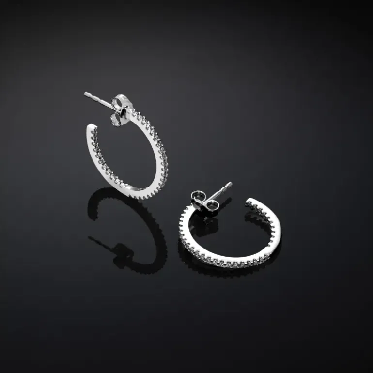 Orecchini a cerchio realizzati in argento 925 con un pavé di zirconi bianchi.