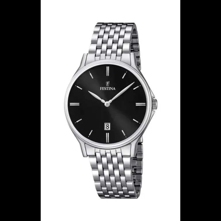 Orologio Solo Tempo Da Uomo Di Festina Della Collezione Classics. Orologio Con Cassa In Acciaio Inossidabile 316L Del Diametro Di Mm 39.0. Colore Quadrante: Nero. Cinturino In Acciaio Inossidabile 316L. Resistenza All’Acqua Di 5 Atm. Movimento Mgm15.