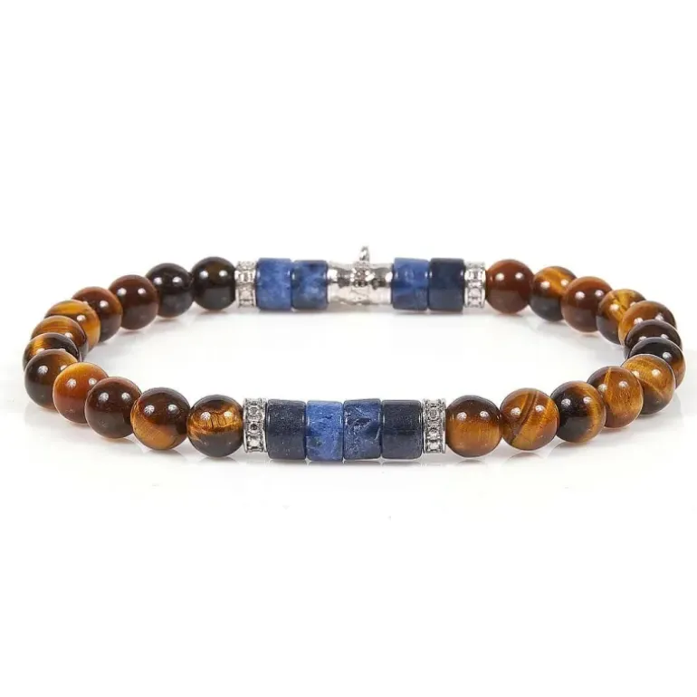 Gioiello Con Occhio Di Tigre 6Mm, Rondella 6Mm Sodalite, Argento 925 Di Colore Argento. Colore Pietra: Marrone. Dimensioni: 19,5 Cm. Elastico.
