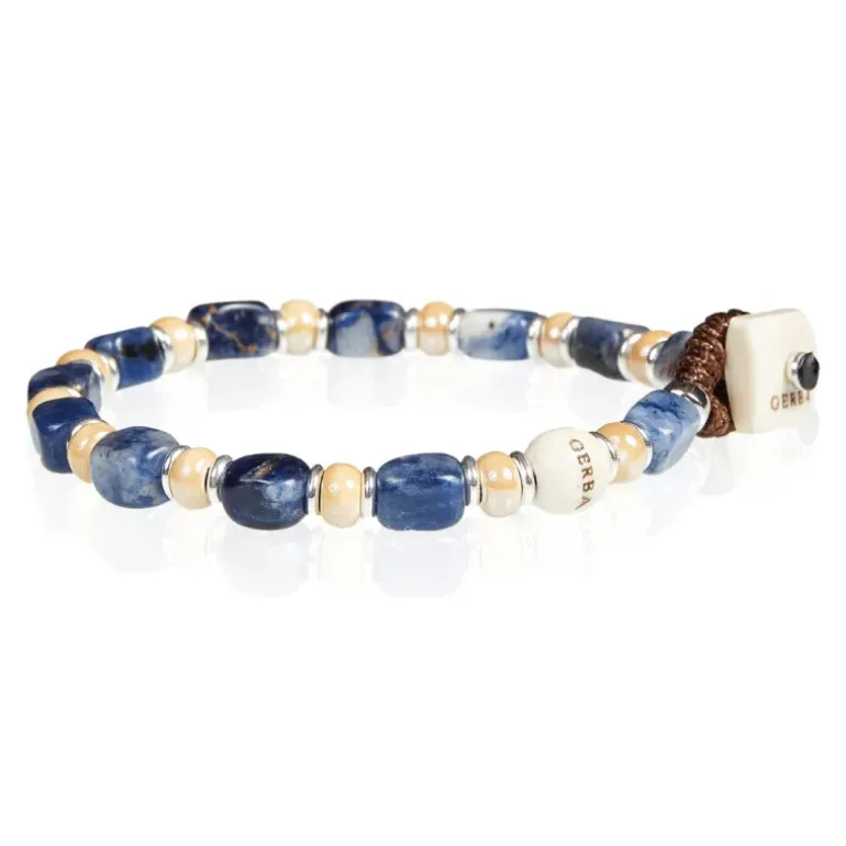 bracciale Gerba Strange Stone 08 si distingue per il suo design particolare, composto da sassi in pietra sodalite blue, ceramica beige, pallina Gerba e bottone in osso, e componenti in Argento 925. Frutto di una rigorosa lavorazione a mano senza l’utilizzo di nessun particolare strumento, il bracciale richiede un’attenta e paziente elaborazione da parte dei nostri artigiani. Tale lavoro non fa che determinare la bellezza e la preziosità di un prodotto unico e originale nel suo genere. I componenti in Argento sono anallergici con il valore inciso come prova di autenticità.