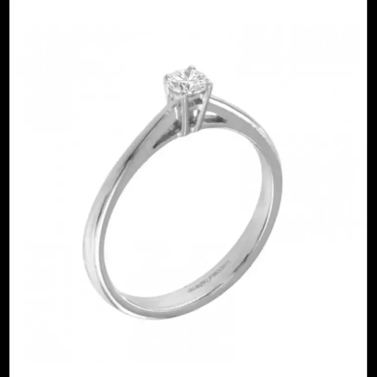 Anello Solitario da donna in oro bianco 18 Kt e diamante da 0,15 kt taglio brillante