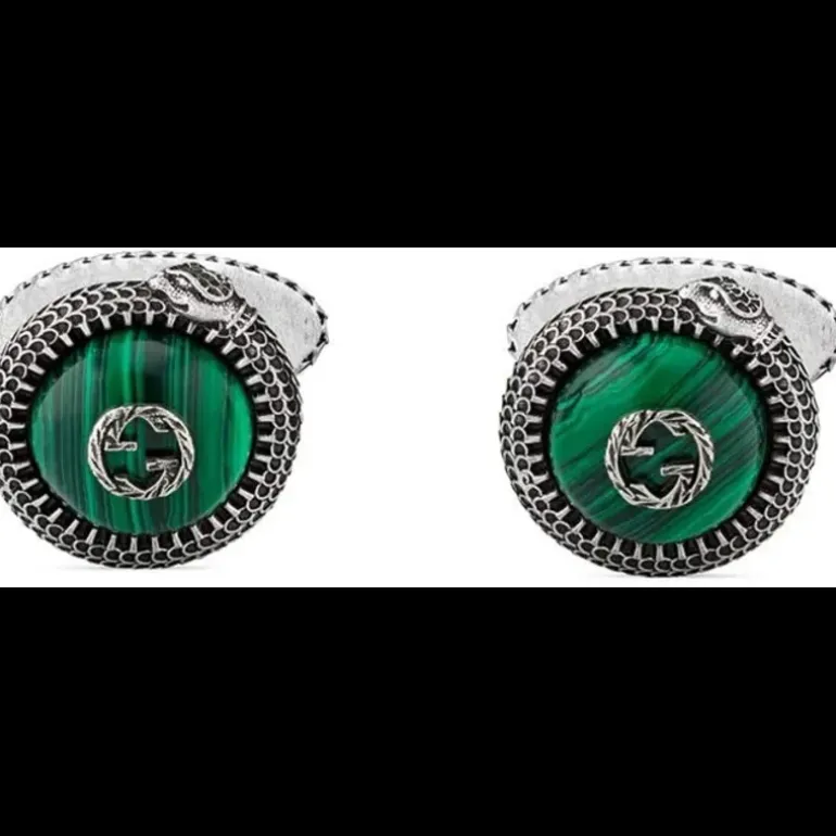 Il giardino Gucci continua a crescere con nuove interpretazioni della linea ispirata alla natura. Questi gemelli in argento sterling presentano Kingsnakes tridimensionali e sono rifiniti con una G. intrecciata