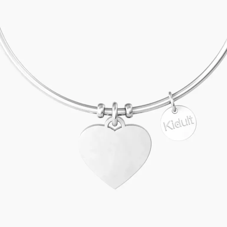 Bracciale bangle in acciaio con ciondolo lucido e satinato a forma di cuore con cristallo bianco e frase “La vita è più bella con un’amica come te”. • Dimensione del ciondolo: 19,5 x 20 mm • Diametro del cristallo: 1.25 mm • Misura unica, circonferenza 20 cm • Materiale: Acciaio 316L, Cristallo