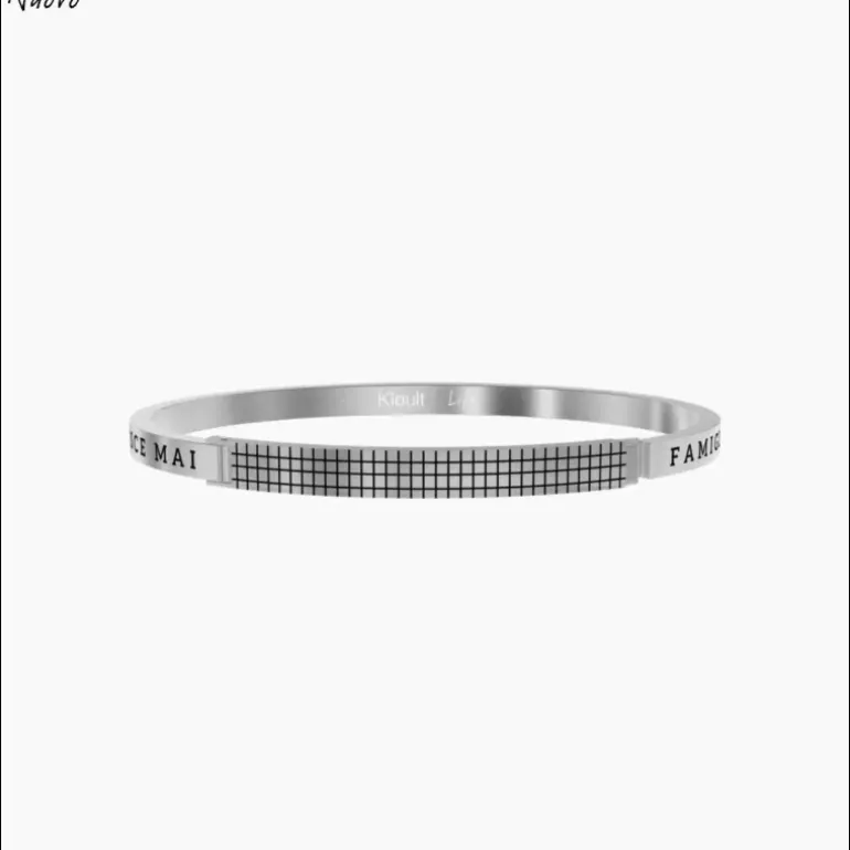 Famiglia, dove la vita ha inizio e l’amore non finisce mai Bracciale rigido in acciaio satinato con chiusura con texture quadrata. • Incisione smaltata • Chiusura a manetta • Misura unica, lunghezza 20,5 cm • Materiale: Acciaio 316L