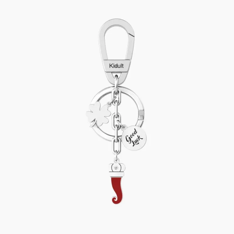 KIDULT – Portachiavi in acciaio con cornetto portafortuna