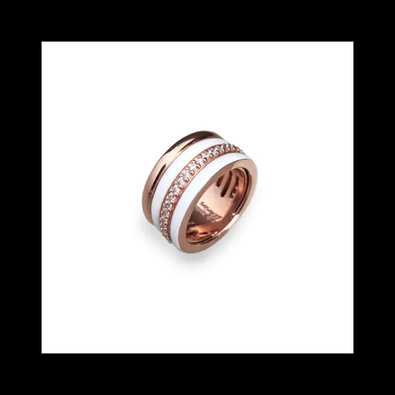 Anello in argento sterling 925% , placcato in oro rosa 22kt , smalto bianco e giro di zirconi.