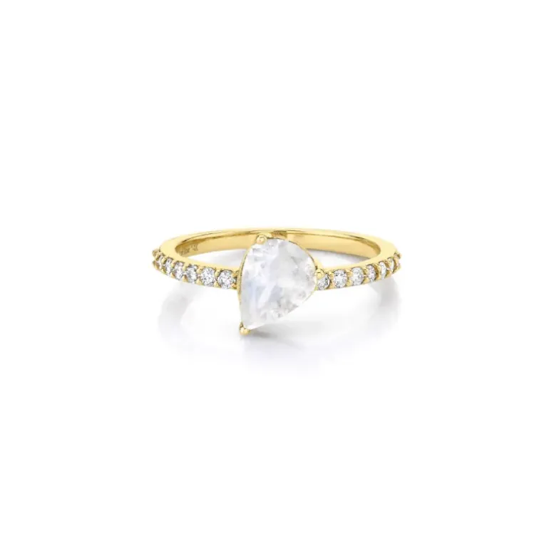 Anello in argento 925 con bagno in oro giallo zirconi bianchi e pietra bianca taglio goccia.