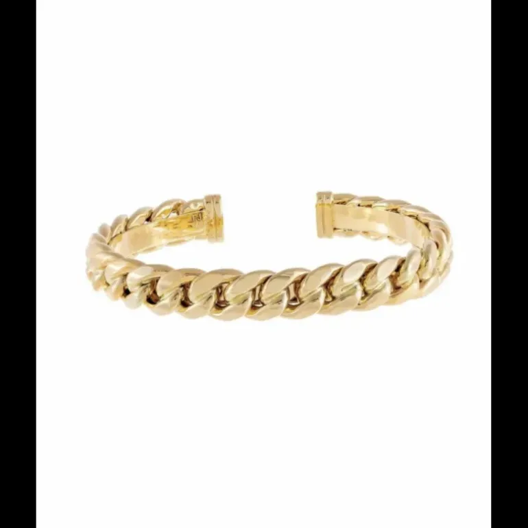 Bracciale groumette rigido in argento 925 con bagno in oro giallo. Diametro interno: 6 cm
