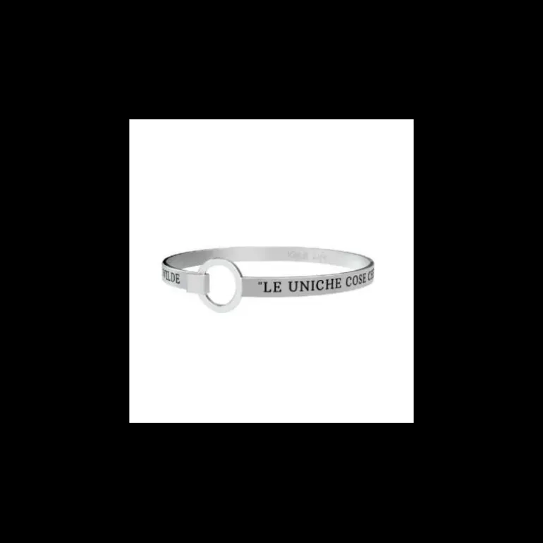 “Le uniche cose che non si rimpiangono sono le proprie follie”. – Oscar Wilde – Bangle in acciaio satinato. • Incisione smaltata • Chiusura tonda • Misura unica, diametro 6 cm • Materiale: Acciaio 316L • Designed by Kidult in Italy