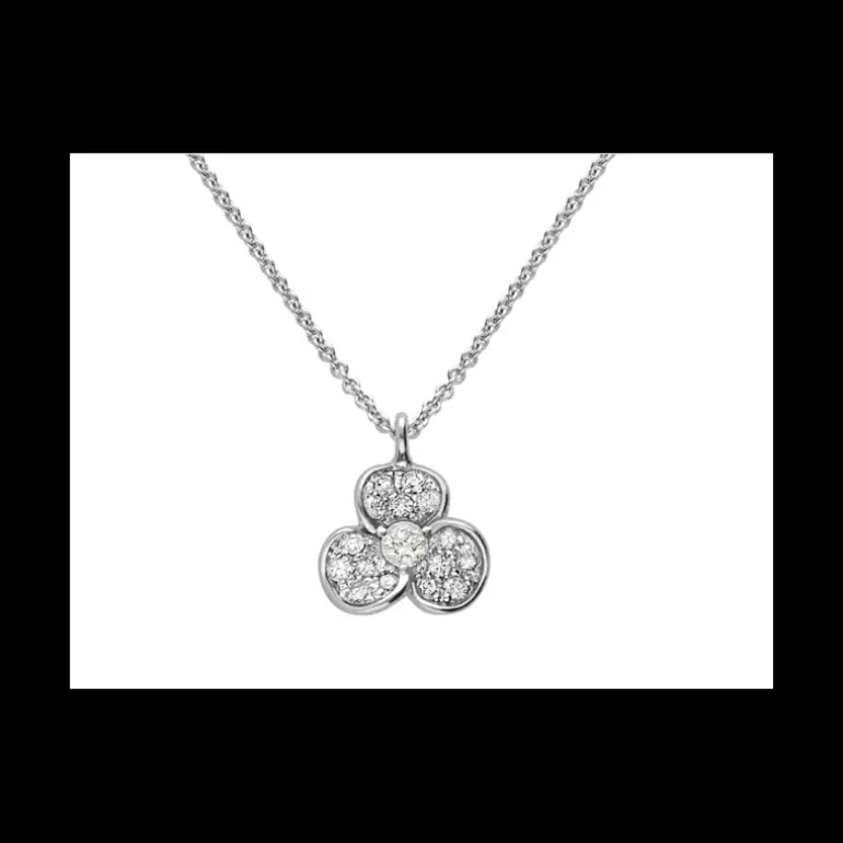 Collana con ciondolo in fiore oro bianco 18 ct con diamanti naturali taglio brillante