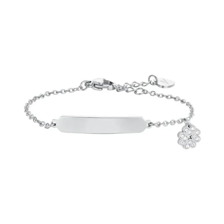 LUCA BARRA – BRACCIALE BAMBINA IN ACCIAIO QUADRIFOGLIO E PIASTRA