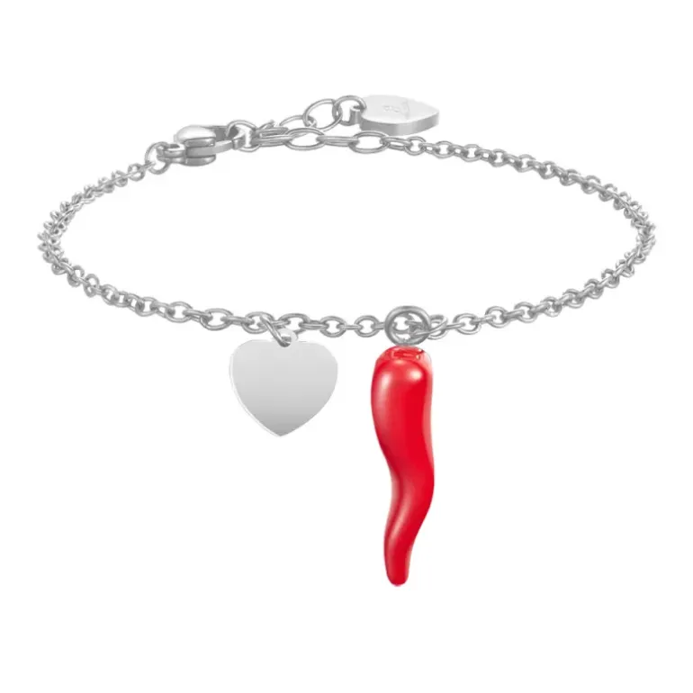 Luca Barra – BRACCIALE DONNA IN ACCIAIO CON CUORE E CORNO ROSSO