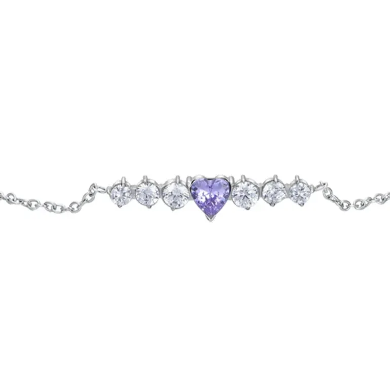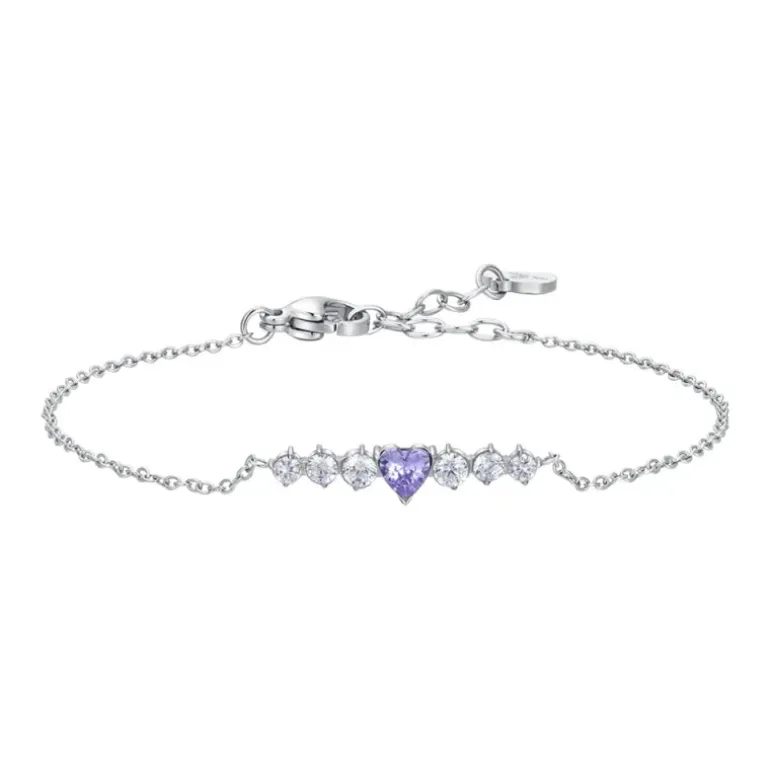 Luca Barra – BRACCIALE DONNA IN ACCIAIO CON CUORE VIOLA E CRISTALLI BIANCHI