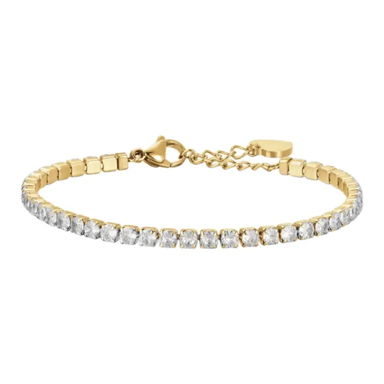 Luca Barra – BRACCIALE TENNIS DONNA IN ACCIAIO IP GOLD CON CRISTALLI BIANCHI