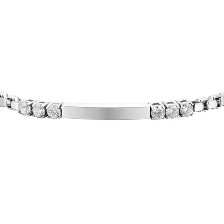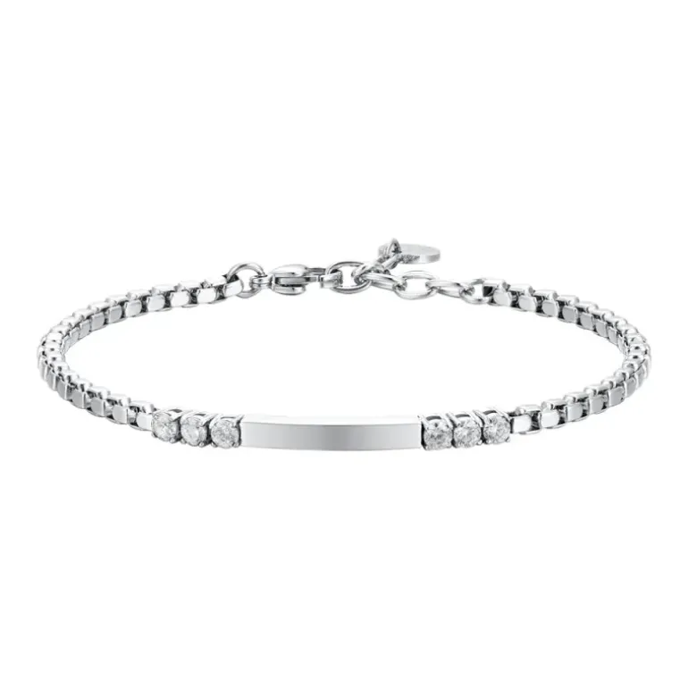 Luca Barra – BRACCIALE UOMO IN ACCIAIO PIASTRA E ZIRCONI BIANCHI
