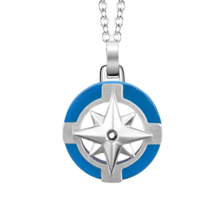 Luca Barra – COLLANA UOMO IN ACCIAIO CON ROSA DEI VENTI E DETTAGLIO BLU