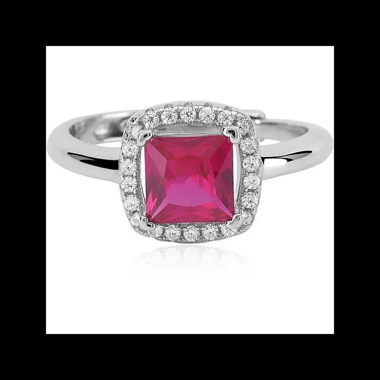 Anello Da Donna Di Mabina Gioielli. Anello In Argento 925 Rodiato Con Rubino Sintetico Taglio Cuscino Antico E Zirconi Bianchi. Incastonatura Centrale A Griffe A Quattro Punte. Misura Regolabile, Dalla 11 Alla 19. Materiale: Argento 925 925 , Zirconi