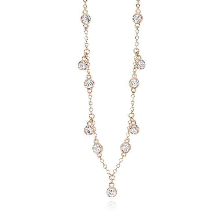 Collana in argento rosato con punti luce in zircone. • Incastonatura degli zirconi a castone • Chiusura con moschettone • Misura unica, lunghezza 42 cm • Materiale: Argento 925 rosato, Zirconi • Codice: 553307