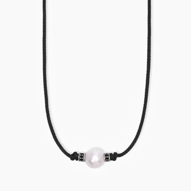 MABINA – Collana in argento con cordino nero e perla bianca TROPICAL